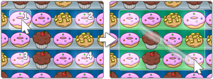 In Cookie Boost hat der Bäcker, nur für Sie, alles schon gebacken und bereitgestellt - Sie müssen sich also um gar nichts kümmern, außer ums Essen! Ihre Aufgabe ist es, Vierecke zu bilden indem Sie vier gleiche Kuchenstücke als Ecken benutzen um ein Gebiet einzugrenzen. Als Ausganspunkt haben Sie eine Minute zeit um so viele Vierecke wie möglich zu finden. Während des Spiels können Sie Bonussekunden erspielen, somit kann eine Runde Zeitmässig verlängert werden.